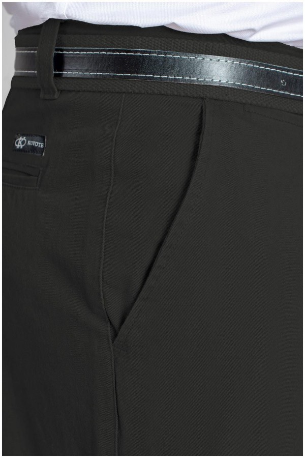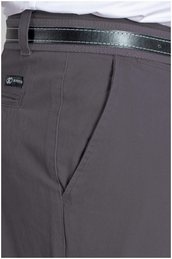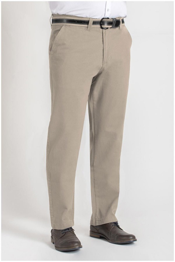 Twill-Hose aus 100% Baumwolle von der Marke Koyote. Dieses Modell ist mit Seitentaschen und 2 Gesäßtaschen sowie einem kleinen Markenetikett auf der Rückseite ausgestattet. Diese übergrößen Chinohose wird mit Gürtel (siehe Fotos) geliefert und ist in verschiedenen Farben erhältlich.