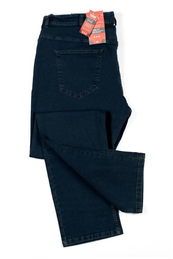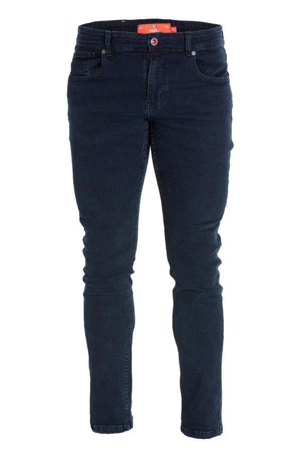 5-Pocket-Modell Jeans der Marke D555 mit Stretch (Tadcaster KS503020). Der Denim-Stoff ist dank 2% Elasthan angenehm geschmeidig und elastisch. Schönes Detail ist der farbige Knopf. Die Jeans hat ein großes Markenlabel am Bund auf der Rückseite.