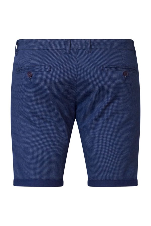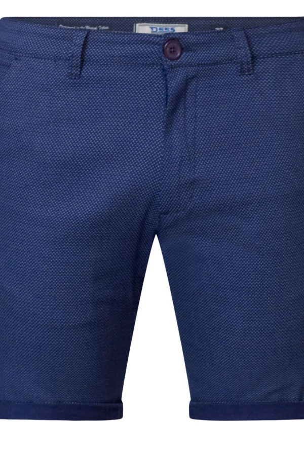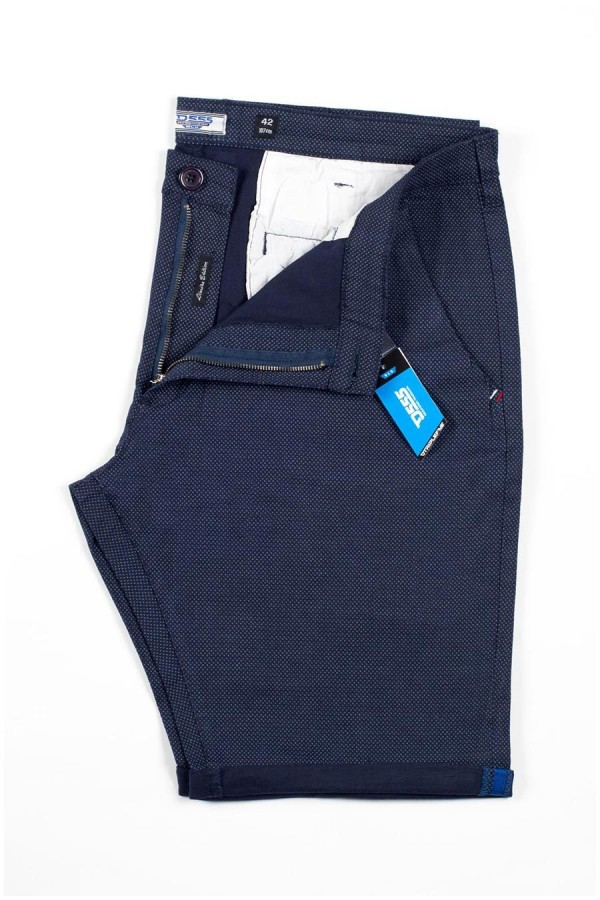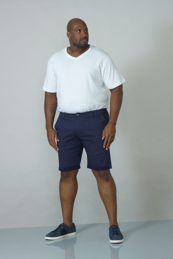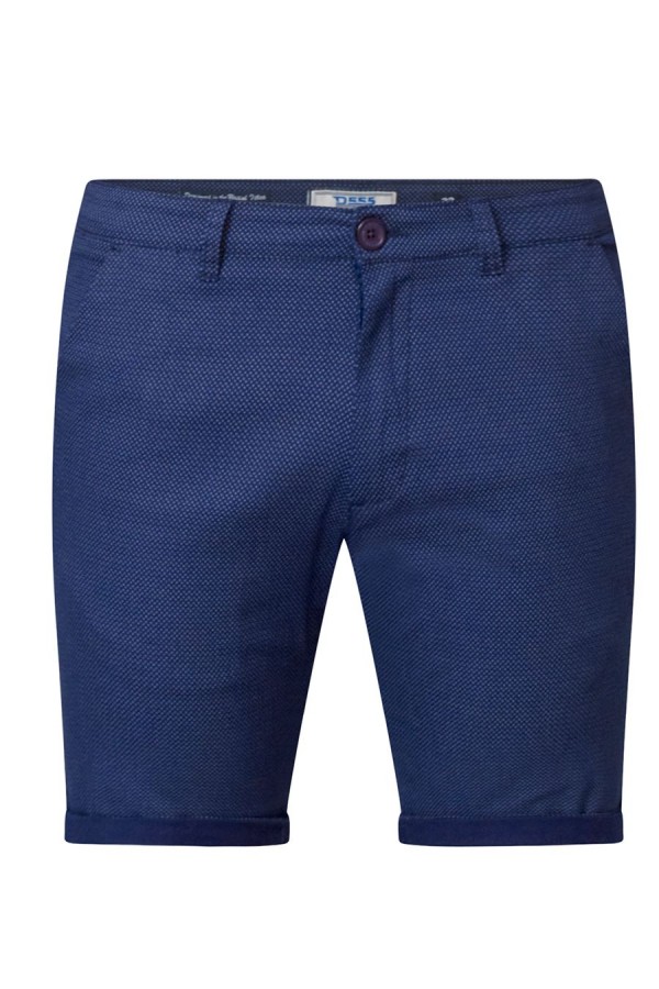 Einfarbige elastische Shorts von der Marke D555 (Artikel-Nr. Calvin-1, KS20127) mit Micro-Allover-Print. Diese Bermuda mit 2 Seitentaschen und 2 Gesäßtaschen ist aus 98% Baumwolle und 2% Elasthan hergestellt und ist daher angenehm und geschmeidig zu tragen.