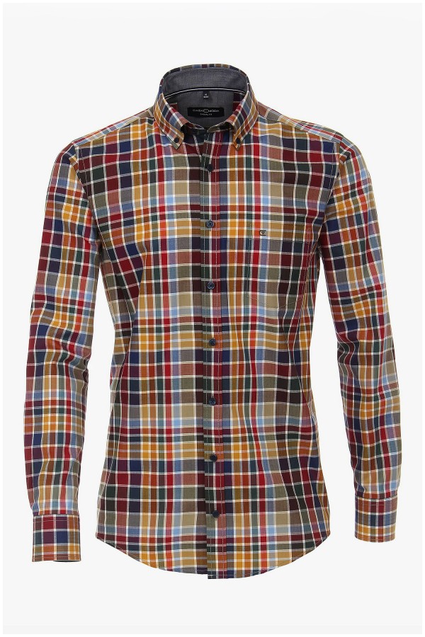Extra langes Casamoda Karohemd mit langen Ärmeln aus 100% Baumwolle.