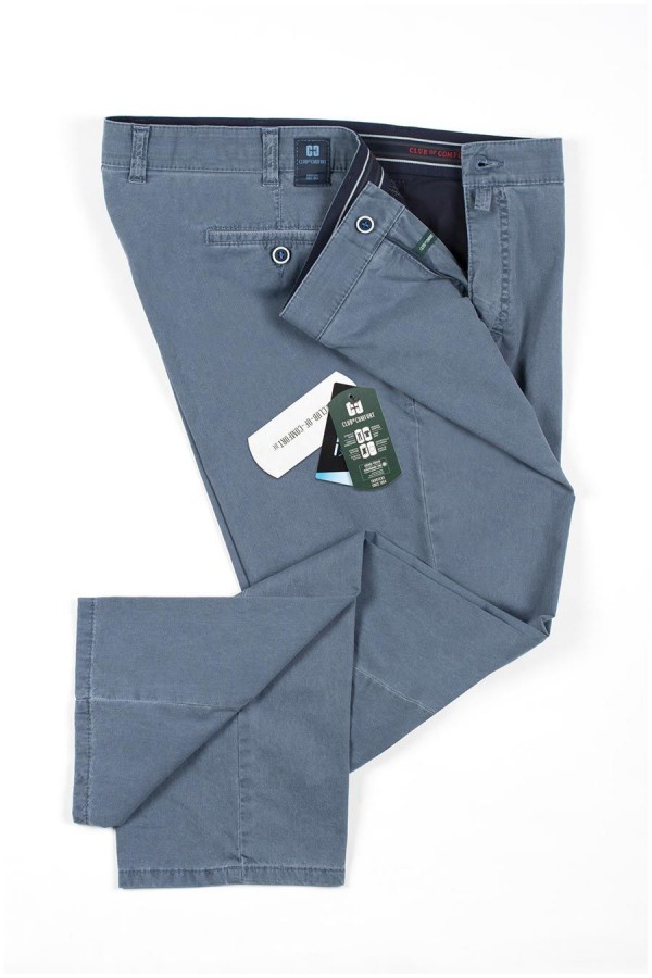 Elastische Freizeithose aus Baumwolle der Marke Club of Comfort (Marvin 6901) mit leichter Mikrostruktur im Stoff und Paspeltaschen mit Knopf hinten. Die Hose besteht aus hochwertiger, High-Stretch Baumwolle und ist mit elastischem Komfortbund mit Hemdstopper ausgestattet.