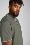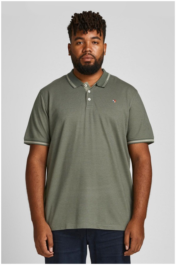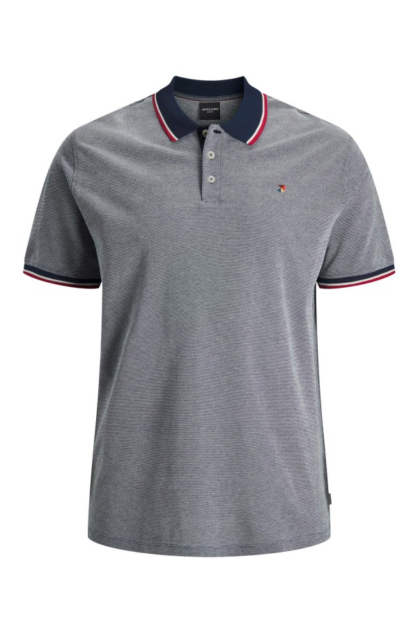 Kurzarmpolo von der Marke Jack & Jones. Das übergrößen Poloshirt besteht aus 100% Baumwolle in Piqué-Qualität. Der Kragen und die Ärmel sind mit einem mehrfarbigen Kontraststoff versehen. Der Polokragen hat 3 Knöpfe. Links hat die Brust des xxl Polos eine subtile bunte Stickerei.