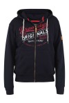 Sweatvest met capuchon en grote meerkleurige tekstprint op de borst. Deze grote maten hoodie met rist van het merk D555 is gemaakt van zachte sweatkwaliteit. De plus size sweathoodie heeft diverse eigenschappen voor meer draagcomfort. Zo zijn de steekzakken ideaal voor het opwarmen van de handen, is de capuchon verstelbaar met trekkoorden en hebben de zoom en mouwen een comfortabele ribboord. Het XXL vest met capuchon is gedetailleerd afgewerkt met een contrasterende band aan de binnenzijde van de hals en een badge aan de zijkant van de linkermouw. Aan de achterzijde van de hoodie is een klein logo op de rechterschouder geprint.