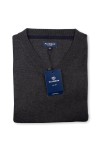 Effen v-hals trui van het merk Plusman gemaakt van 100% katoen. De binnenzijde van de kraag van deze uni groten maten trui is voorzien van een contrasterende band. De kraag, de manchetten en de zoom van deze plus size sweater zijn afgewerkt met een elastische boord voor extra draagcomfort.