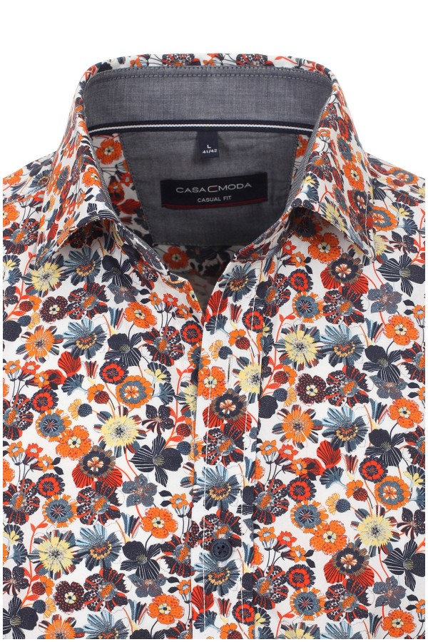 Vrijetijdsoverhemd met lange mouwen. Dit XXL casual shirt van het merk Casamoda heeft een zeer modieuze florale allover print. De kentkraag is net als de manchetten aan de binnenkant afgewerkt met een contraststof. Het grote maten overhemd is gemaakt van 100% katoen in een heerlijk comfortabele kwaliteit.