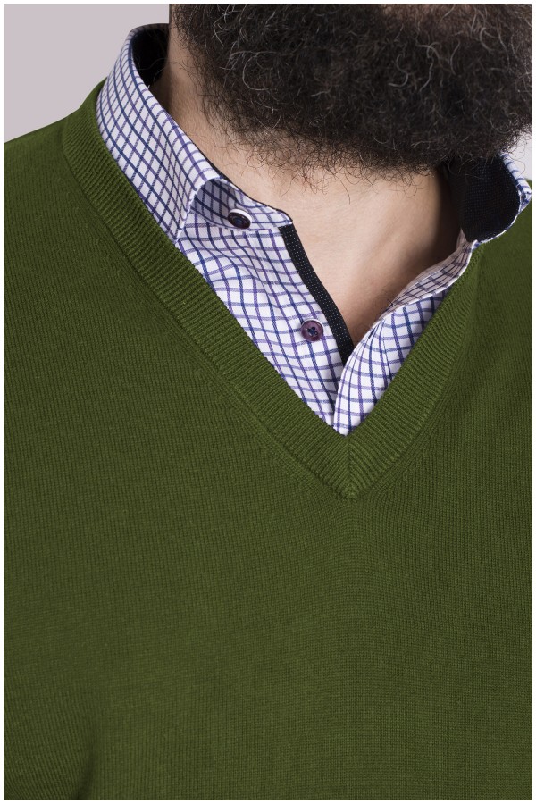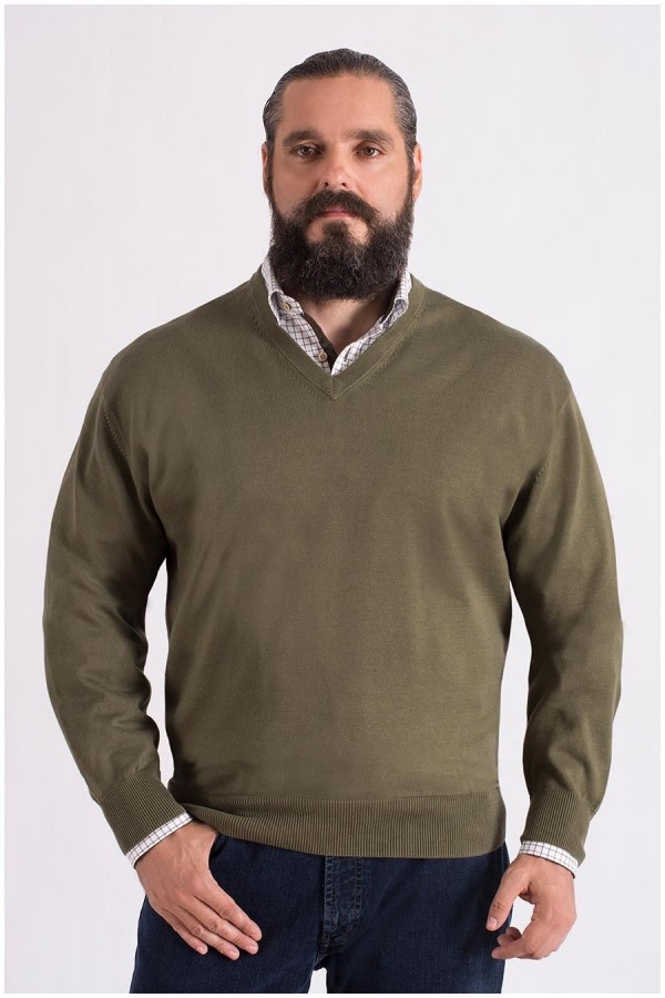 Uni-Pullover mit V-Ausschnitt, aus 100% Baumwolle, von der Marke Redfield. Der übergrößen Baumwollpullover hat Rippstrick am Kragen, an den Manschetten und am Bund für zusätzlichen Tragekomfort. Bevorzugen Sie einen Rundhalsausschnitt? Wir haben auch den gleichen Pullover in dieser Version.