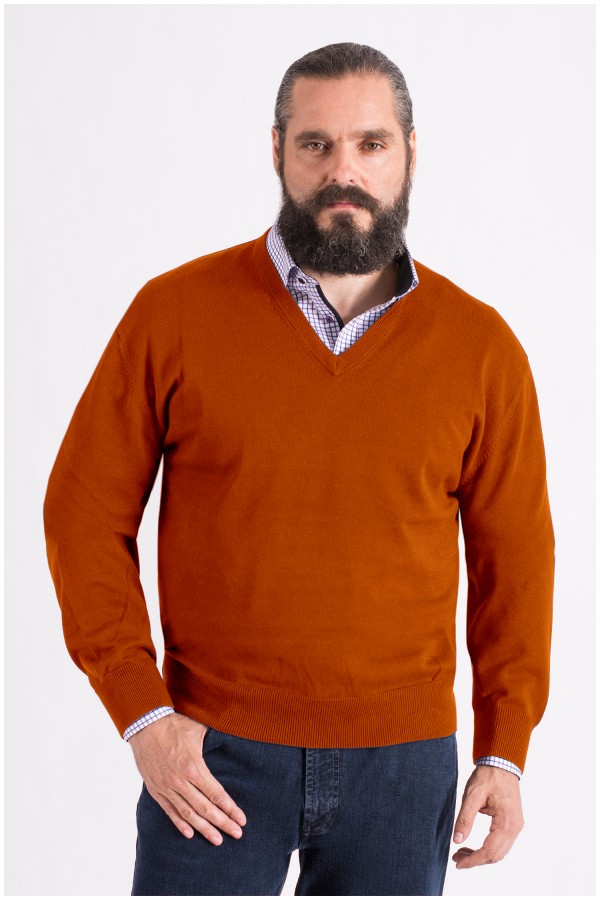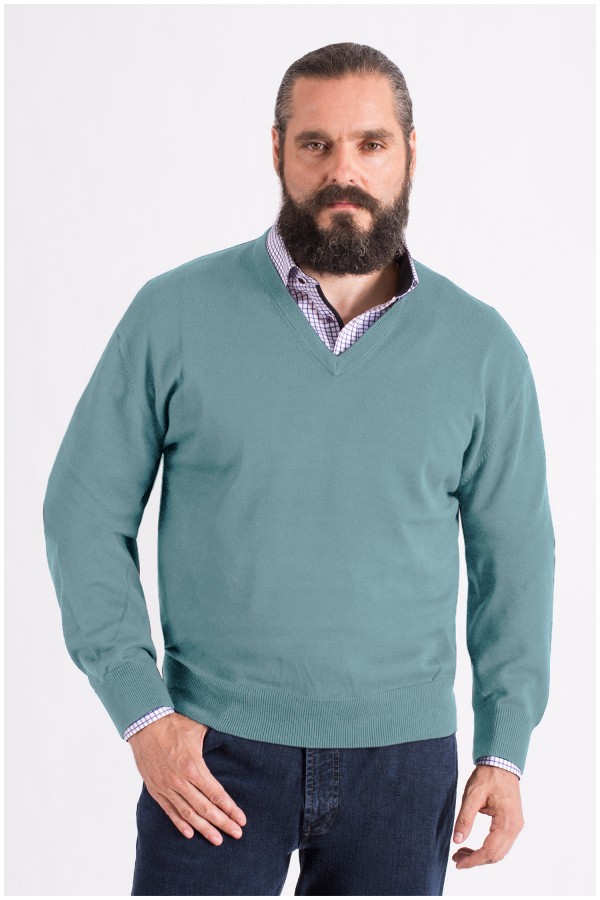 Uni-Baumwollpullover mit V-Ausschnitt von Redfield.