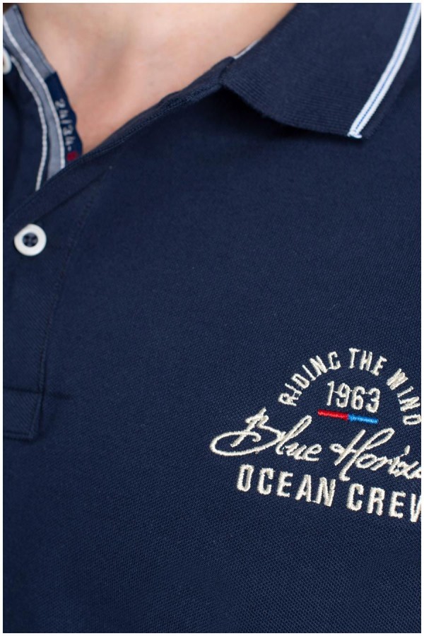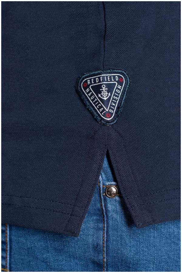 Einfarbiges Kurzarm-Poloshirt der Marke Redfield (Art.-Nr. RF21912012) in Piqué-Qualität. Dieses Polo aus 100% Baumwolle ist mit einem Streifenband an den Ärmeln und an der Innenseite der Knopfleiste versehen. Die Knopfleiste ist weiterhin mit einem Kontraststoff versehen. Auf der Brust befindet sich eine Textstickerei und an der Seite unten ein Badge.