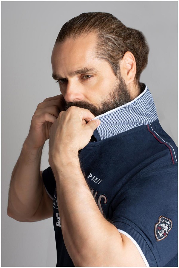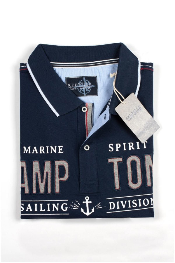 100% Baumwollpolo mit kurzen Ärmeln von der Marke Redfield. Dieses Polo hat einen großen Aufdruck auf der Brust kombiniert mit Stickereien und kleinen Abzeichen auf dem Ärmel und auf dem Rücken. Darüber hinaus ist das Polo-Shirt mit weiteren Details, wie kontrastfarbenen Nähten und einem mehrfarbigen Band entlang der Knopfleiste, reich verziert. Der Kragen ist mit einem karierten Stoff an der Unterseite versehen und hat genau wie die Ärmel eine kontrastierende Kante.