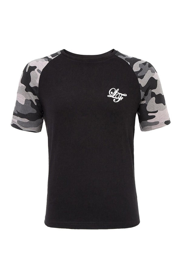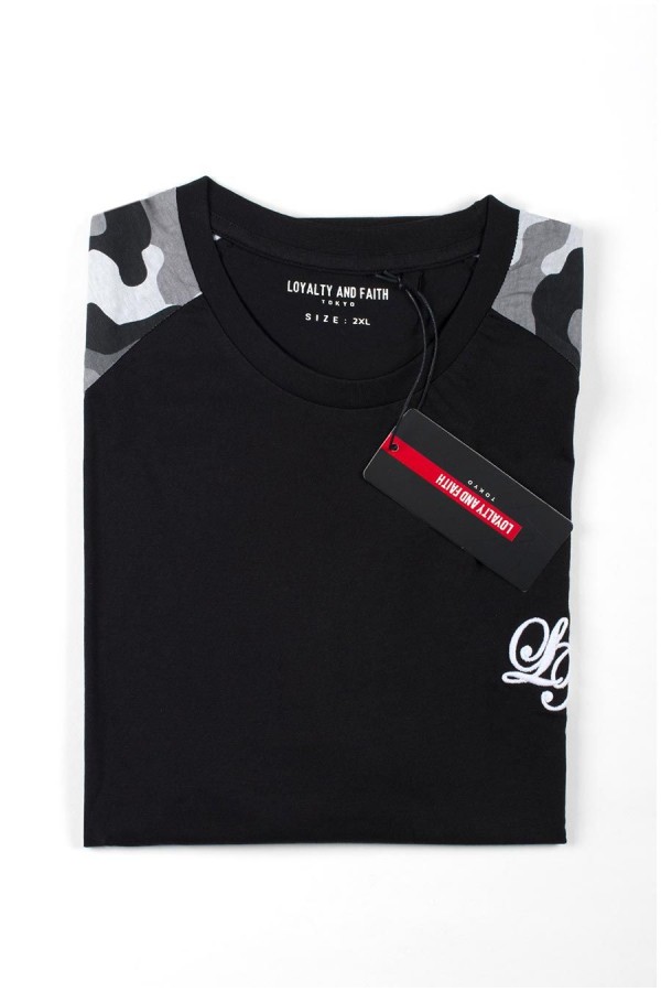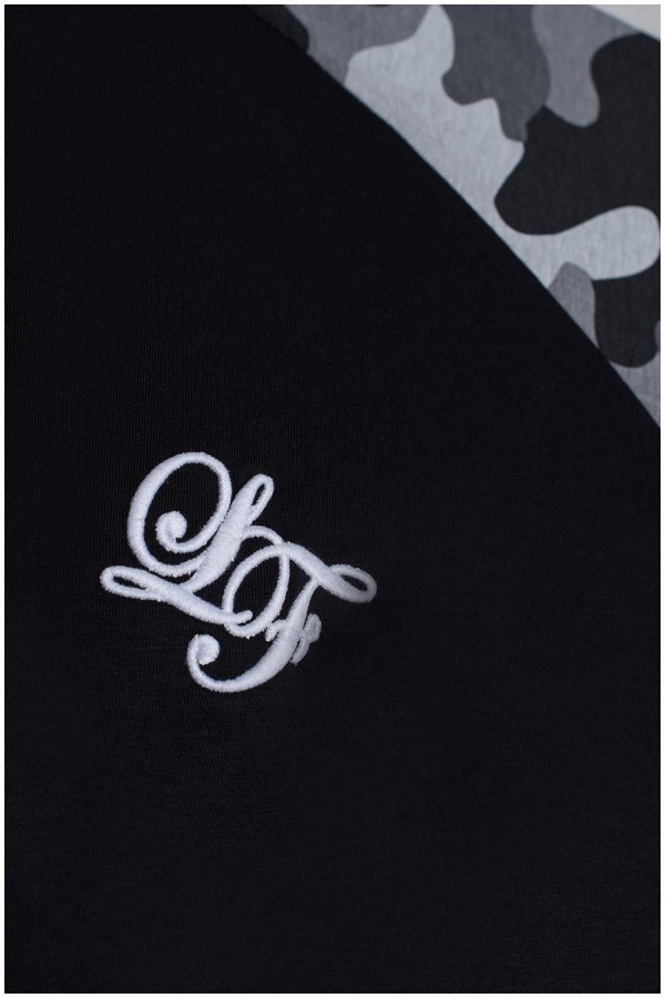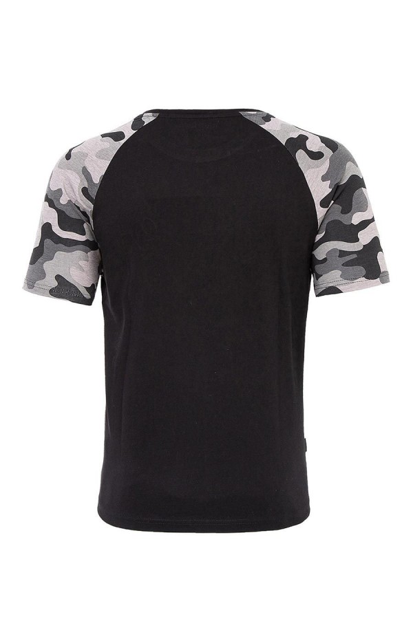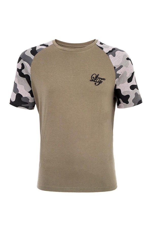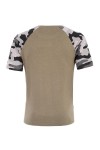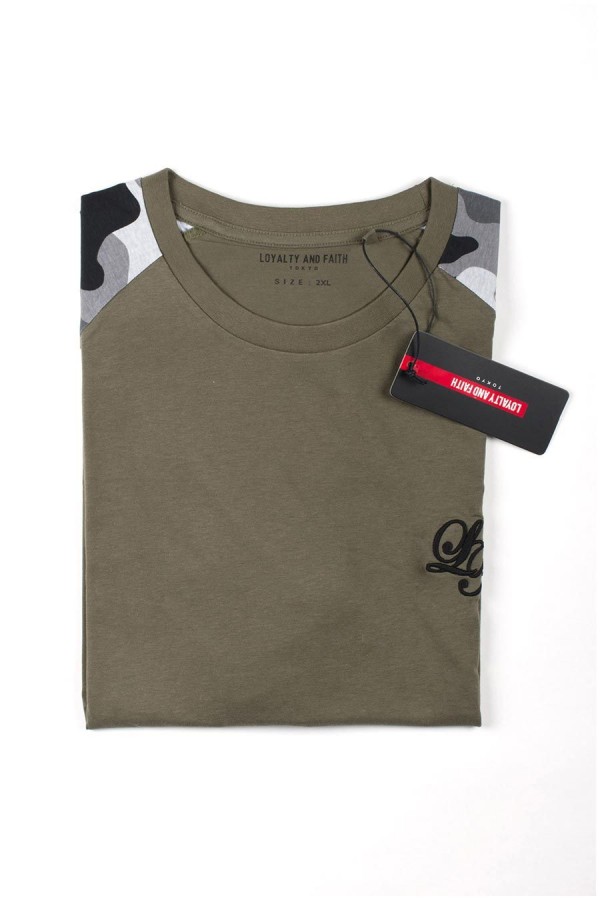 T-Shirt aus 100% Baumwolle mit kurzen Ärmeln und Rundhalsausschnitt von der Marke Loyalty & Faith. Der einfarbige Body hat ein Markenlogo auf der linken Brustseite. Die Raglanärmel haben einen angesagten Camouflage-Print.