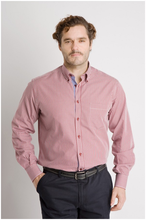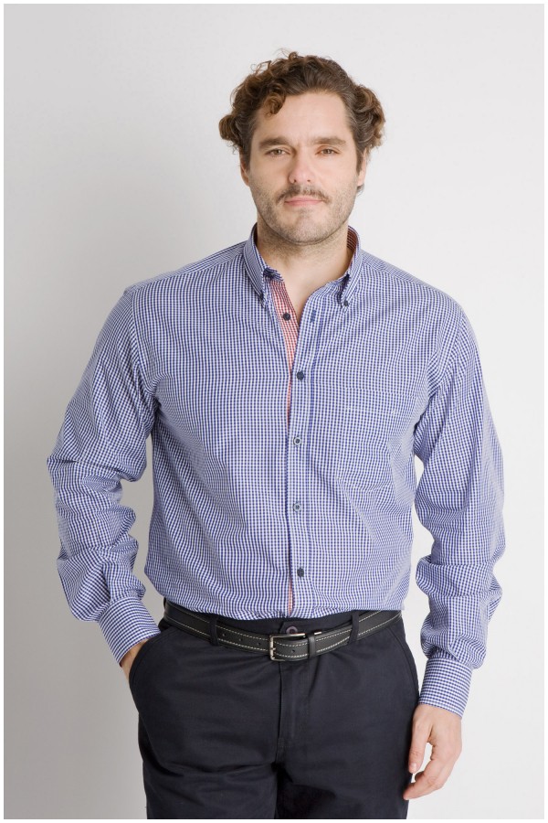 Kariertes Freizeithemd von Plusman. Dieses extra lange Hemd wurde speziell für große Männer mit extra Ärmellänge und extra langem Rücken entwickelt. Die Innenseite des Button-Down-Kragens, die Knopfleiste und die Innenseite der Manschetten sind mit einem Kontraststoff versehen. Das überlange Hemd hat eine aufgenähte Brusttasche.