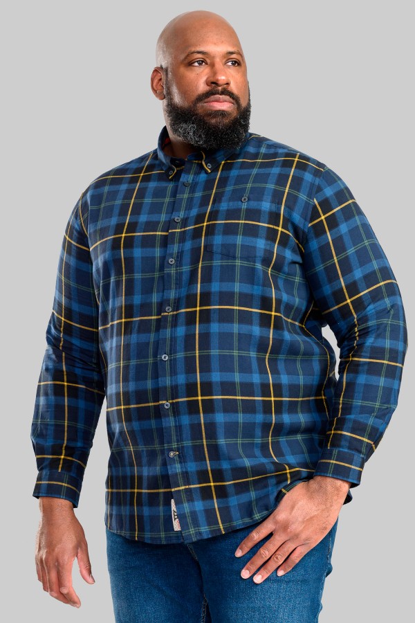 Extra langes Flanellhemd von D555 mit Karomuster und aus 100% Baumwolle.