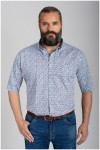 Freizeithemd der Marke GCM Originals (Art.-Nr. 5421BM). Dieses Hemd in Übergröße hat einen modernen Allover-Print aus kleinen Blättern und einen lässigen Button-Down-Kragen. Die Innenseite des Kragens ist mit einem Chambray-Kontraststoff versehen. Der Stoff des Plus Size Kurzarmshirts ist extrem anschmiegsam und elastisch, wodurch das Shirt angenehm zu tragen ist. Der Stoff besteht aus einem Mix aus atmungsaktiver Baumwolle und elastischem Elasthan.
