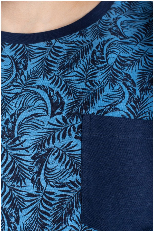 T-Shirt mit kurzen Ärmeln und Allover-Blätterdruck. Dieses Plus Size T-Shirt von S.O.H.O. New York ist aus 100% Baumwolle gefertigt. Die aufgenähte Brusttasche in Uni-Kontrastfarbe rundet den sportlichen Charakter dieses XXL-T-Shirts ab.