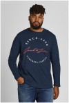 Jack & Jones Langarm-T-Shirt mit großem zweifarbigem Logo-Print auf der Brust. Das Plus Size T-Shirt ist aus 100% Baumwolle mit Stretch gefertigt und hat einen klassischen Rundhalsausschnitt mit farbigem Band. Wir haben das gleiche T-Shirt auch in einer kurzärmeligen Version. Diese finden Sie