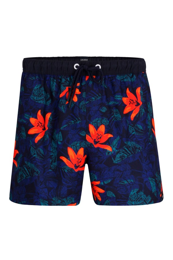 Badeshorts der Marke Ceceba mit Blumendruck (Artikelnummer 80043). Diese Badehose in Übergröße hat eine Mesh-Innenhose und ist aus Mikrofaser hergestellt, wodurch die Badehose schnell trocknet. Der Unibund ist elastisch und lässt sich mit einer Kordel stellen. Die XXL Badehose hat eine uni genähte Gesäßtasche und 2 Ösen hinten.