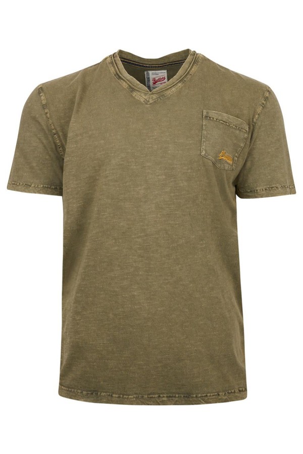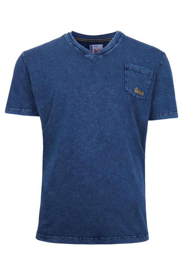 Kurzärmliges Vintage-T-Shirt der Marke Redfield mit Auswascheffekt. Dieses T-Shirt mit V-Ausschnitt aus 100% Baumwolle hat eine Brusttasche mit kleiner Stickerei auf der linken Brust. Aufgrund des Färbevorgangs weist das T-Shirt subtile Farbunterschiede auf, die ihm einen sehr modischen Look verleihen. Diese Farbunterschiede können von denen auf den Fotos abweichen.