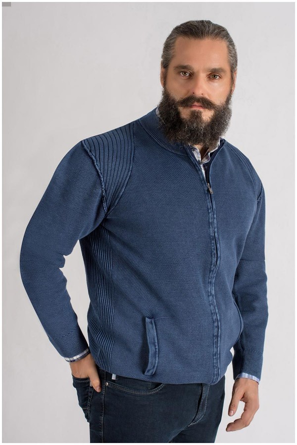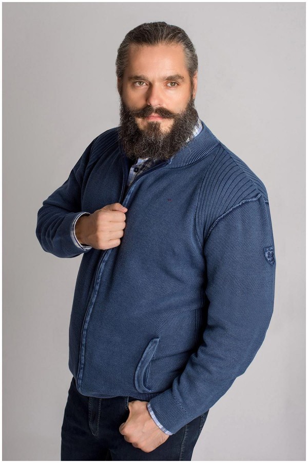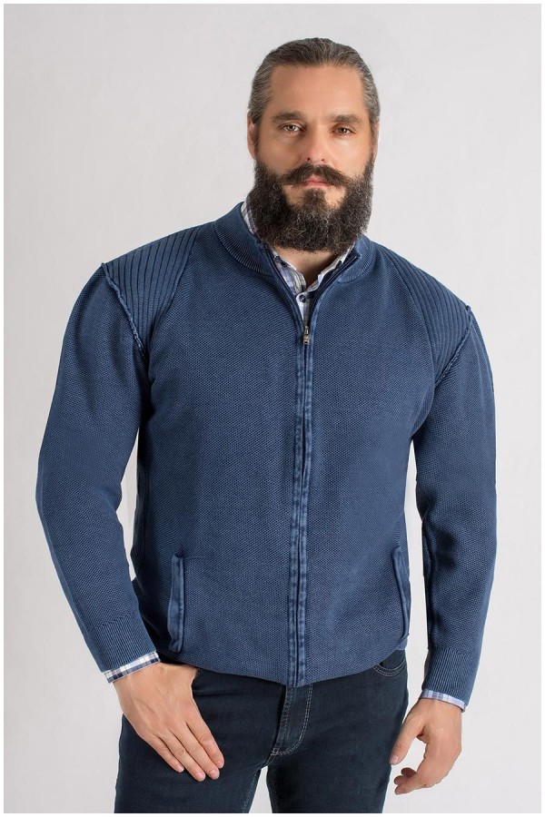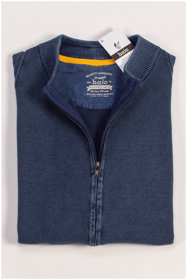 Jacke mit Einschubtaschen und Reißverschluss von der Marke Hajo. Diese Jacke ist aus, 100 % Baumwolle, Strukturstoff hergestellt. Die Jacke ist mit schönen Details wie den gerippten Einsätzen auf den Schultern und an den Seiten und einem Badge am Ärmel versehen. Die Strickjacke ist „Indigo eingefärbt“, wodurch ein modischer „Used-Look“ entsteht. Die Farbe kann mit der Zeit und vielen Waschgängen leicht verblassen.