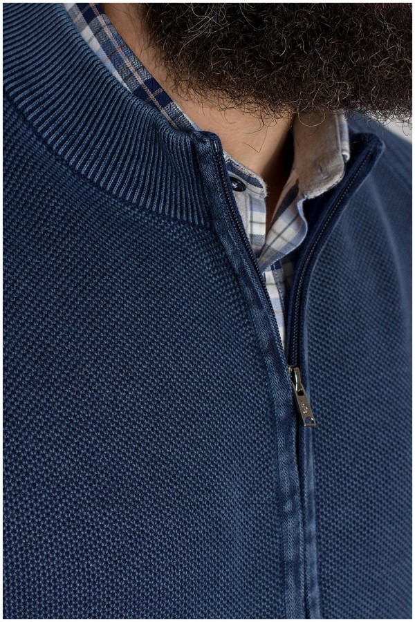Baumwollstrickjacke mit Reißverschluss im „Used-Look“ von Hajo.