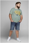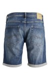 Elastische Jeans-Bermuda im 5-Pocket-Modell. Diese Shorts der Marke Jack & Jones haben vorne und hinten Flecken an den Beinen. Die Gesäßtaschen sind mit Tonnähten als modisches Detail versehen. Die Unterseite der Beine ist nach oben gedreht. Die großen Stretch-Bermudashorts bestehen aus Baumwolle, die unter anderem mit Elasthan gemischt ist, was für eine bequeme Elastizität der Hose sorgt.