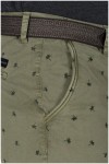 Bedruckte Stretch-Bermuda der Marke Koyote. Die Shorts bestehen aus einer Mischung aus Baumwolle und Elasthan, wodurch sich der Stoff glatt und dehnbar anfühlt. Der Stoff ist mit einem Sommerpalmenmuster bedruckt. Die übergrößen Bermuda hat verschiedene modische Details wie bearbeitete Öffnungen der Taschen, farbige Nähte auf dem Beinbezug, gleichfarbige Nähte auf der Innenseite des Bunds und einen kontrastierenden Innenschlauch aus Material. Die lässige Shorts wird wie auf dem Foto mit dem Gürtel geliefert.