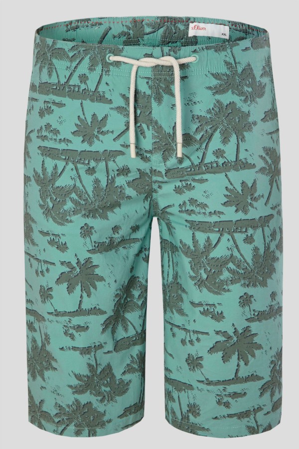 Elastische Shorts von s.Oliver bedruckt mit einem Allover-Print aus Palmen.