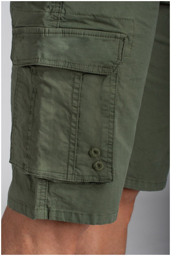 Shorts der Marke Koyote mit Cargotaschen. Die großen Cargo-Shorts sind mit verschiedenen Taschen ausgestattet. Die Cargotaschen in der Mitte der Hosenbeinen sind mit einer Klappe und Druckknöpfen versehen. Die gestickten Ösen an den Cargotaschen sind ein modisches Detail. Die elastischen XXL Cargo-Bermudashorts bestehen aus atmungsaktiver Baumwolle in Mischung mit dehnbarem Elasthan, wodurch die Shorts in Übergröße angenehm zu tragen sind.