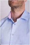 Businesshemd mit langen Ärmeln von der Marke Plusman. Einfarbiges Oberhemd mit einer feinen Struktur im Stoff und mit einem tonalen Band im Kragen. Die Manschetten haben je 1 Knopf. Mit Kontrastnähten rundum die Knopflöcher. Dieses Oberhemd ist auch in einer extra langen Version erhältlich.