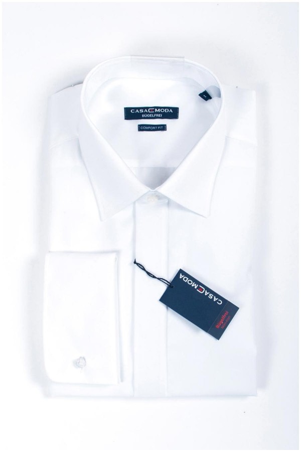 Uni Langarm Herrenoberhemd von der Marke Casamoda. Mit versteckten Knöpfen vorne und einem Haifischkragen. Dieses Oberhemd ist aus 100% pflegeleichter Baumwolle hergestellt und daher leicht zu bügeln.