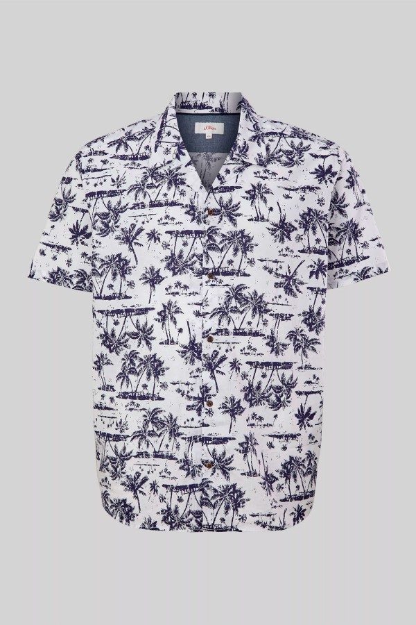 Kurzarmhemd in Übergröße. Das lässige Shirt der Marke s.Oliver ist mit einem Allover Botanical Print bedruckt. Der 100% Baumwollstoff macht das XXL Shirt ideal um im Sommer schön luftig zu tragen. Der offene Kragen verleiht dem Freizeithemd einen zeitgemäßen Look.