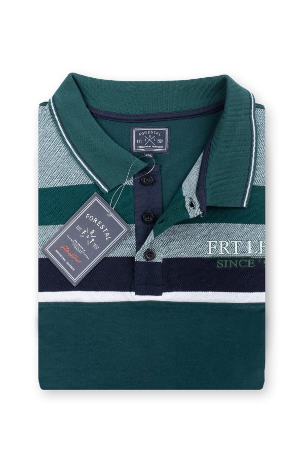 Langarm-Pique-Polo der Marke Forestal. Das xxl Polo besteht aus 100% Baumwolle in einer sehr bequemen Piqué-Qualität. Das Poloshirt hat eine dezente Stickerei auf der linken Brust. Der Polokragen mit 3 Knöpfen hat einen Rand in Kontrastfarbe und ist mit einem Kontraststoff versehen. Die breiten Manschetten an den Ärmelenden bieten noch mehr Komfort.
