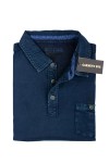 Kurzarm-Poloshirt aus 100% Baumwolle von Monte Carlo. Das Markenlogo ist auf der linken Brust des Herrenpolos aufgestickt. Unter dieser Stickerei befindet sich eine aufgesetzte Brusttasche mit Knopfverschluss. Der Kragen des Freizeitpolos hat innen einen gestreiften Kontraststoff. Das große Hemd hat während der Produktion einen sogenannten "Overdye" -Prozess durchlaufen, der dazu führen kann, dass das Polo im Laufe der Zeit leicht seine Farbe ändert.