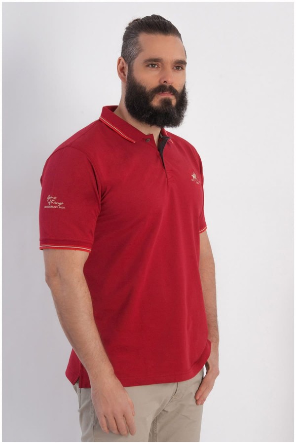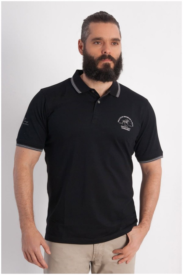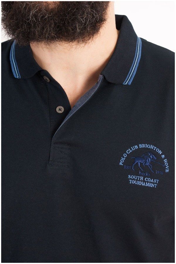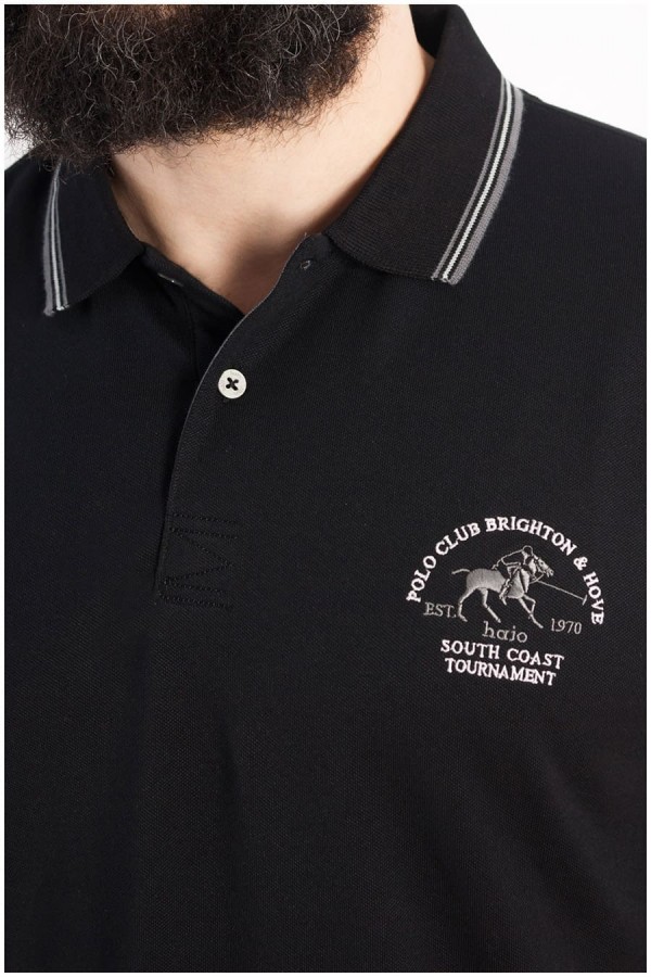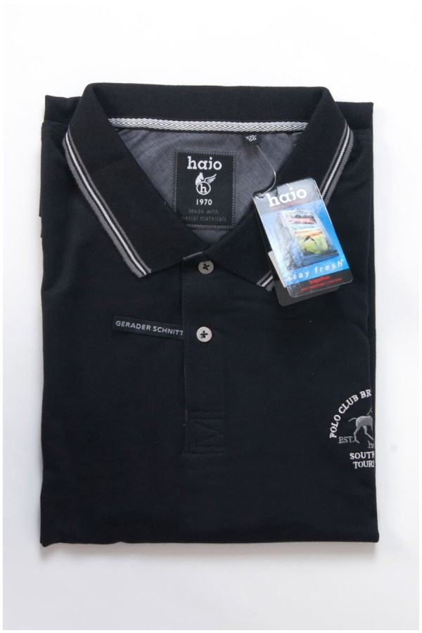 Elastisches Piqué Polohemd mit kurzen Ärmeln von der Marke Hajo. Der Polokragen mit zwei Knöpfen ist ebenso wie die Ärmel mit einem kleinen Kontraststreifen und elastischen Bündchen für zusätzlichen Tragekomfort hergestellt. Auf der Brust und dem rechten Ärmel hat dieses Polohemd eine kleine Stickerei. Der Piquéstoff, aus dem dieses einfarbige Polohemd hergestellt ist, besteht aus Baumwolle, Polyester und Elasthan, wodurch sich der Stoff dehnt und eine bequeme Passform hat.