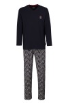 Ceceba Pyjama aus 100% Baumwolle, bestehend aus einem uni Langarm-T-Shirt mit V-Ausschnitt und einer langen Hose mit Allover-Print.