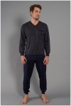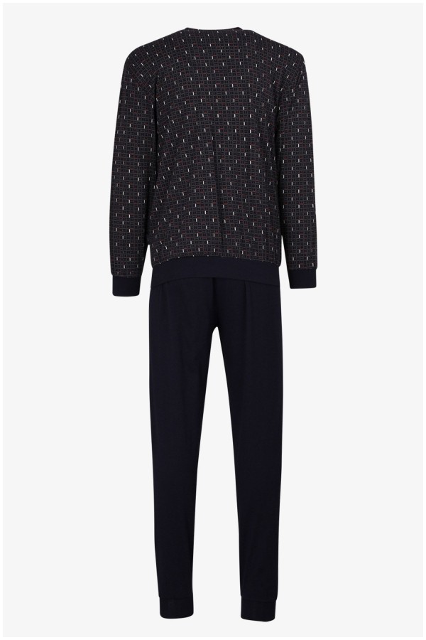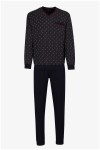 100% Baumwoll-Pyjama von Götzburg bestehend aus einem Langarm-Shirt mit Print und uni langer Hose.