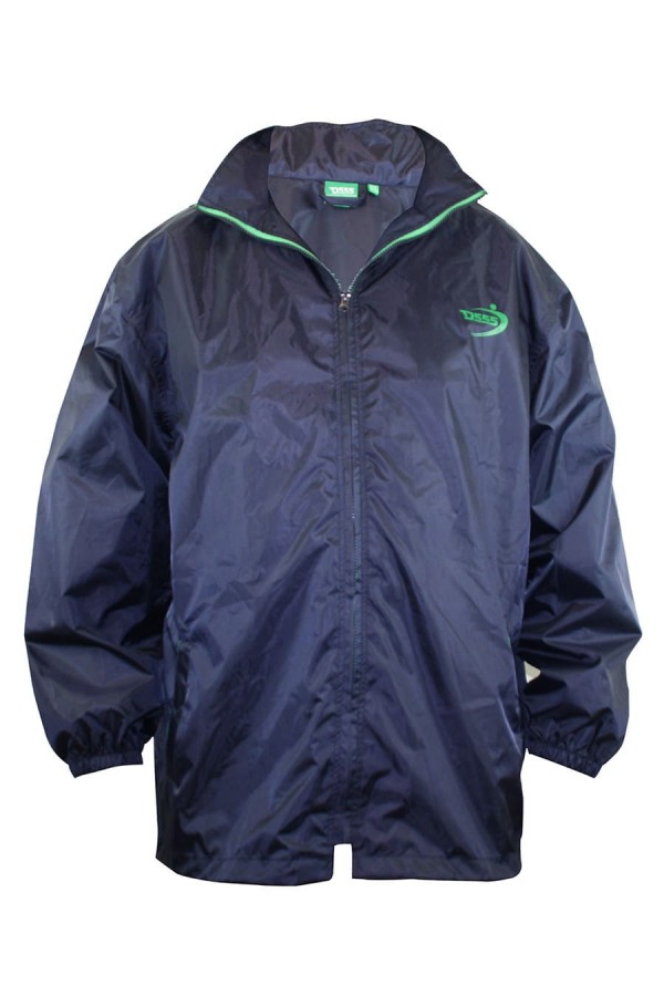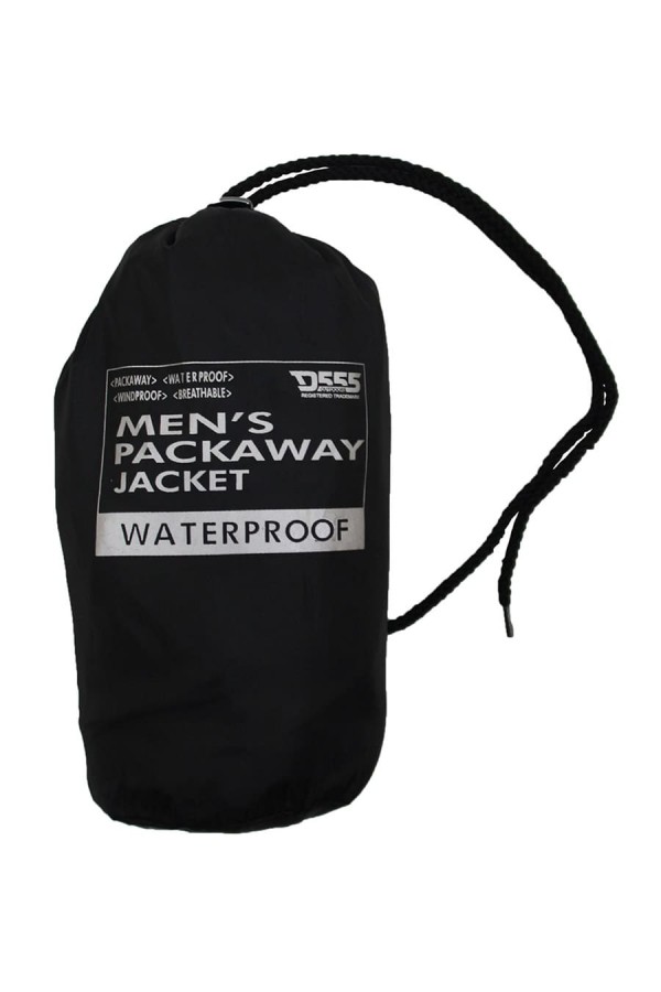 Wasserdichte Regenjacke von D555 mit einem Aufbewahrungsbeutel.