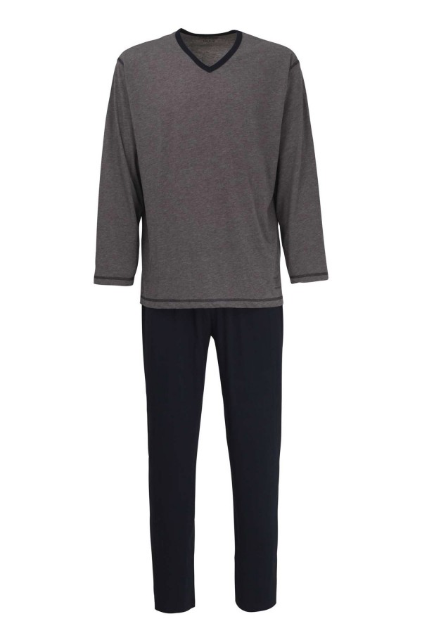 Langer Pyjama von Ceceba mit gemischtem Uni-Top mit V-Ausschnitt.