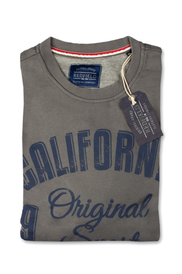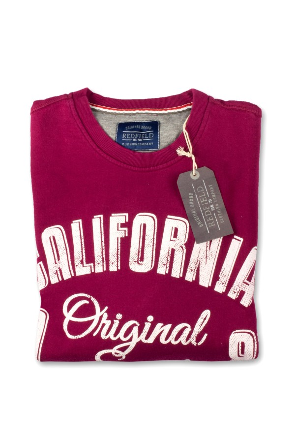 Pullover von Redfield mit Rundhalsausschnitt. Der übergrößen Pullover hat einen großen Textdruck auf der Brust und ist mit einem farbigen Band und Kontraststoff im Kragen versehen.