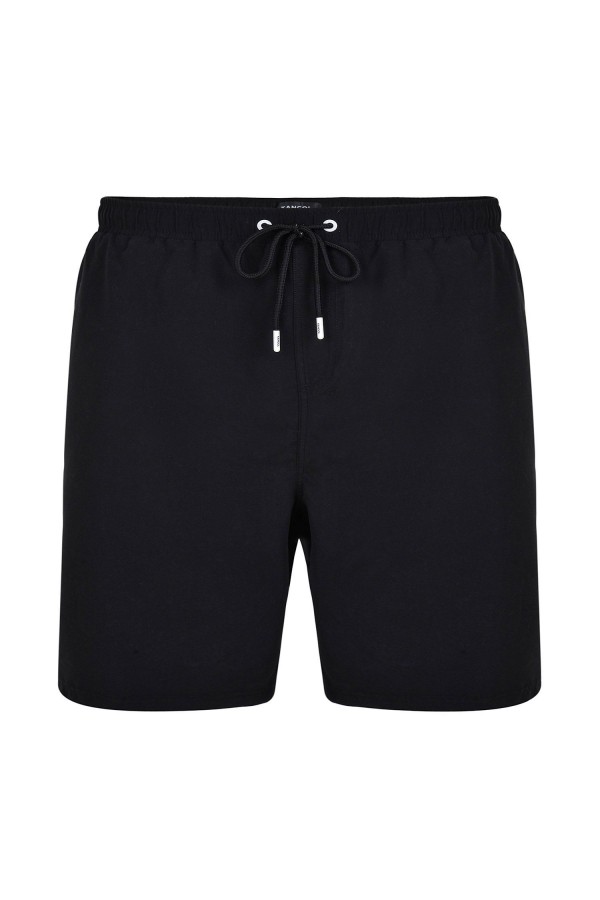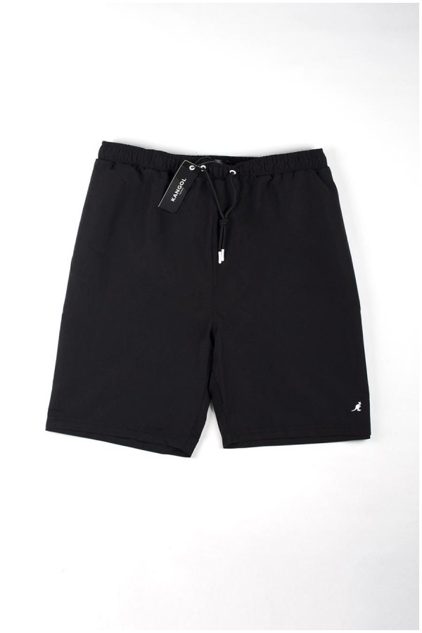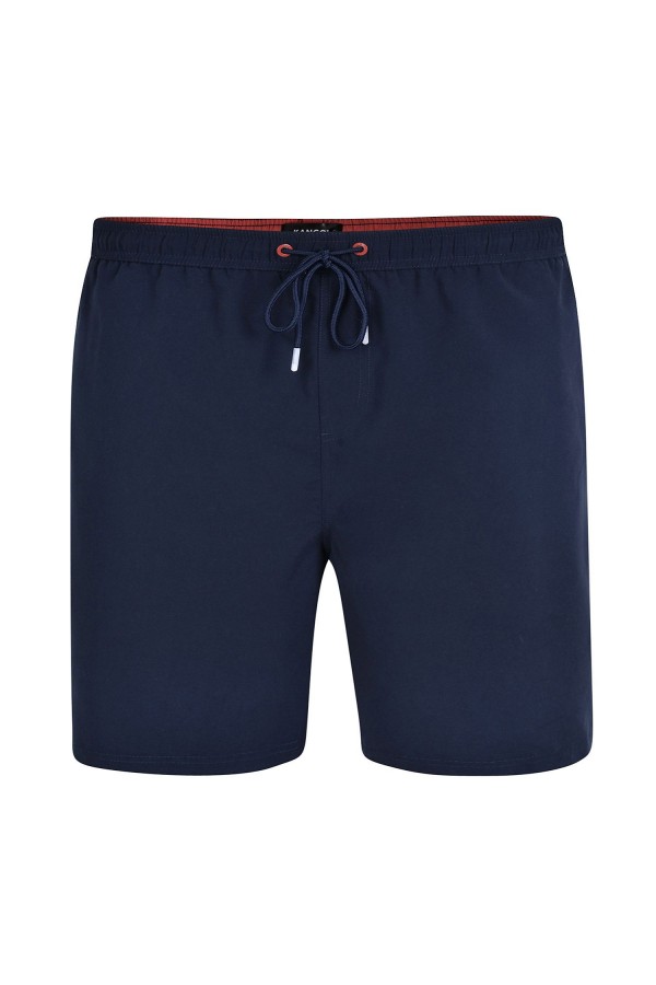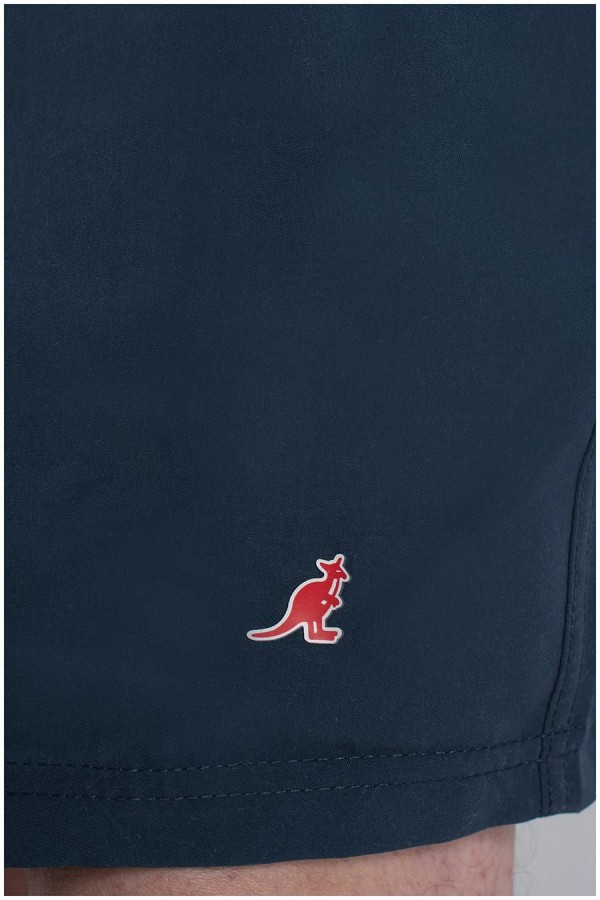 Uni-Badeshorts von der Marke Kangol aus Mikrofaser (also schnell trocknend). Der elastische Bund kann mit Kordelzug auf die richtige Größe eingestellt werden. Dieser Badeanzug ist außerdem mit einem kleinen Markenlogo auf dem linken Bein versehen. Zwei Seitentaschen und eine Gesäßtasche.